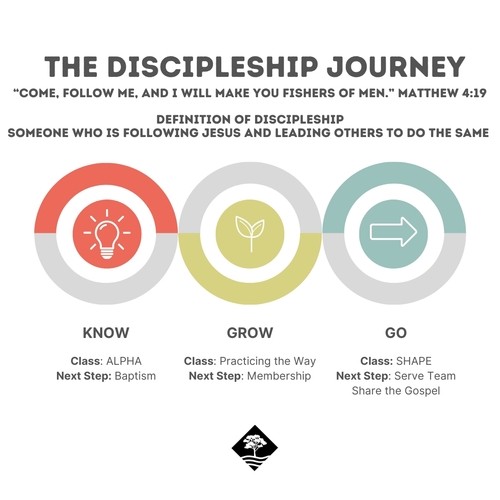 These three areas are where we focus on for the development of the life of a disciple of Jesus. All of our adult ministries fall under one of these three areas. With each area, we have a core class to help you understand more deeply the call of Jesus and also a practical next step to help you in your journey of faith. For more information about the discipleship journey, check out the following messages that explain the overall journey (the Call of Jesus) and each of the three areas that Jesus has called us to grow in.
